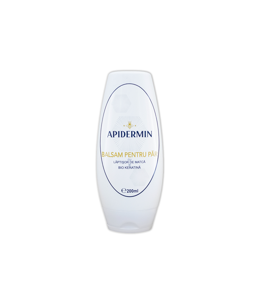 Cocktail de vitamine, enzime si proteine, balsamul Apidermin, fortifica, revitalizeaza si remineralizeaza. Laptisorul de matca stimuleaza cresterea fiind singura substanta naturala ce activeaza regenerarea celulara in timp ce bio keratina imbraca firul de par intr-un strat protector. Astfel, parul tratat chimic sau agresat de mediu isi recapata stralucirea si forta naturala, Bio Keratina netezindu-i structura si protejandu-l chiar si in timpul tratamentelor chimice ulterioare. Parul devine, stralucitor, puternic si mai usor de pietanat.